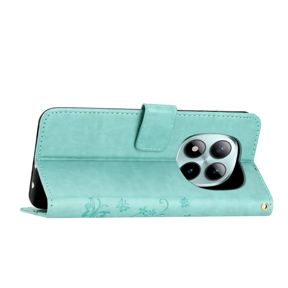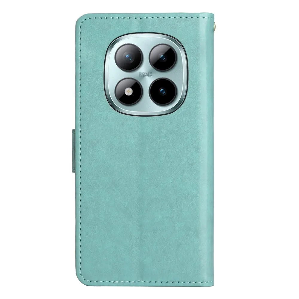 Modrozelené peňaženkové puzdro Flowers na mobil Xiaomi Redmi Note 15 Pro+ 5G