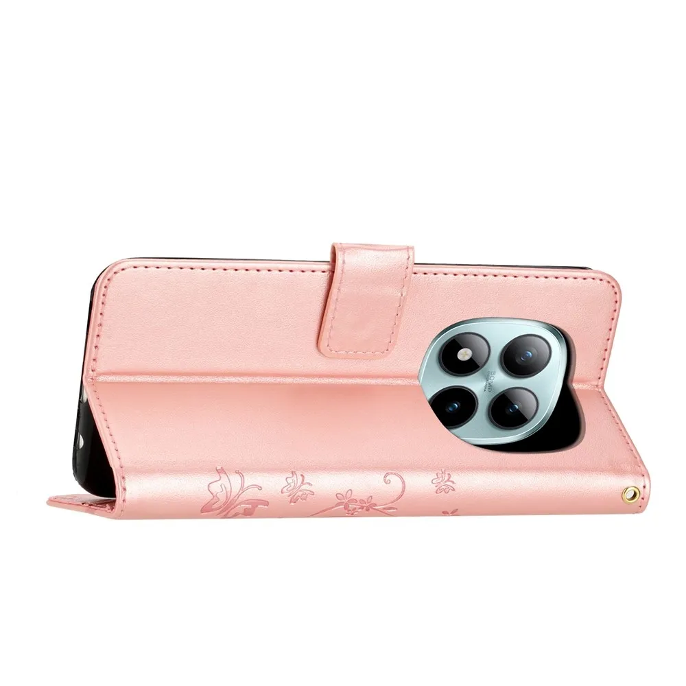 Ružovozlaté peňaženkové puzdro Flowers na mobil Xiaomi Redmi Note 15 Pro+ 5G