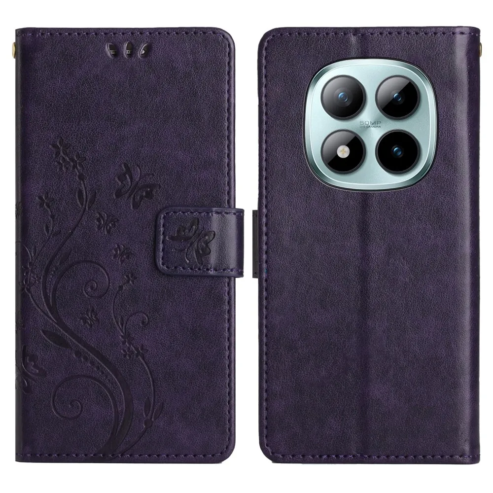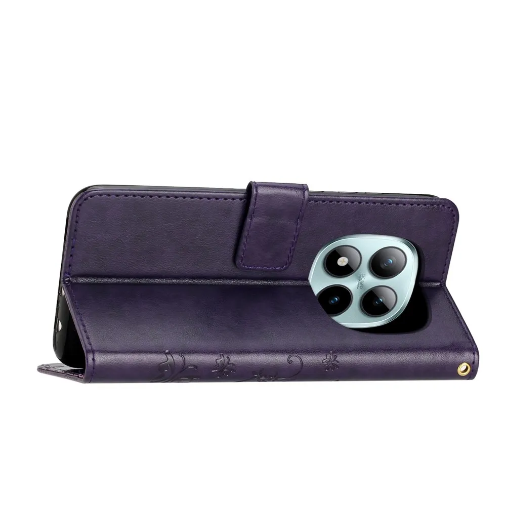 Tmavofialové peňaženkové puzdro Flowers na mobil Xiaomi Redmi Note 15 Pro+ 5G