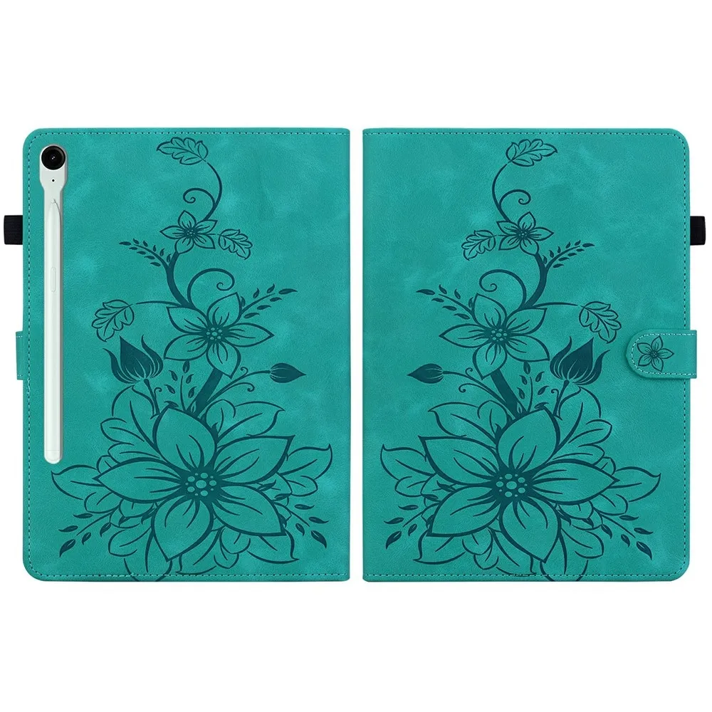 Modrozelené zatváracie púzdro Flowers na tablet Samsung Galaxy Tab S11