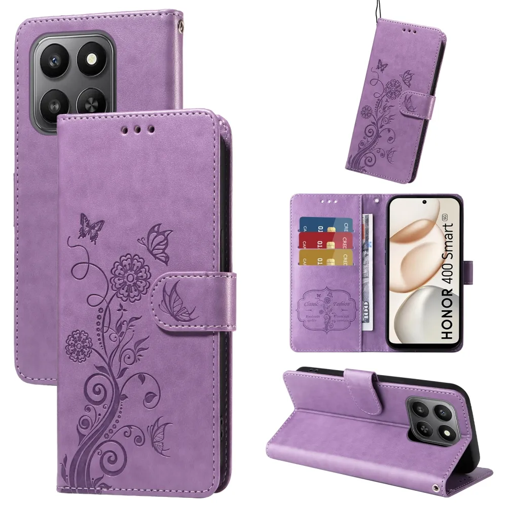 Flowery knižkové puzdro Honor 400 Smart 5G/4G/Honor X7d - fialové