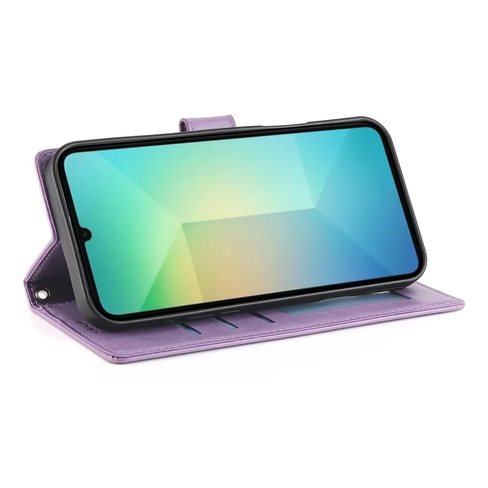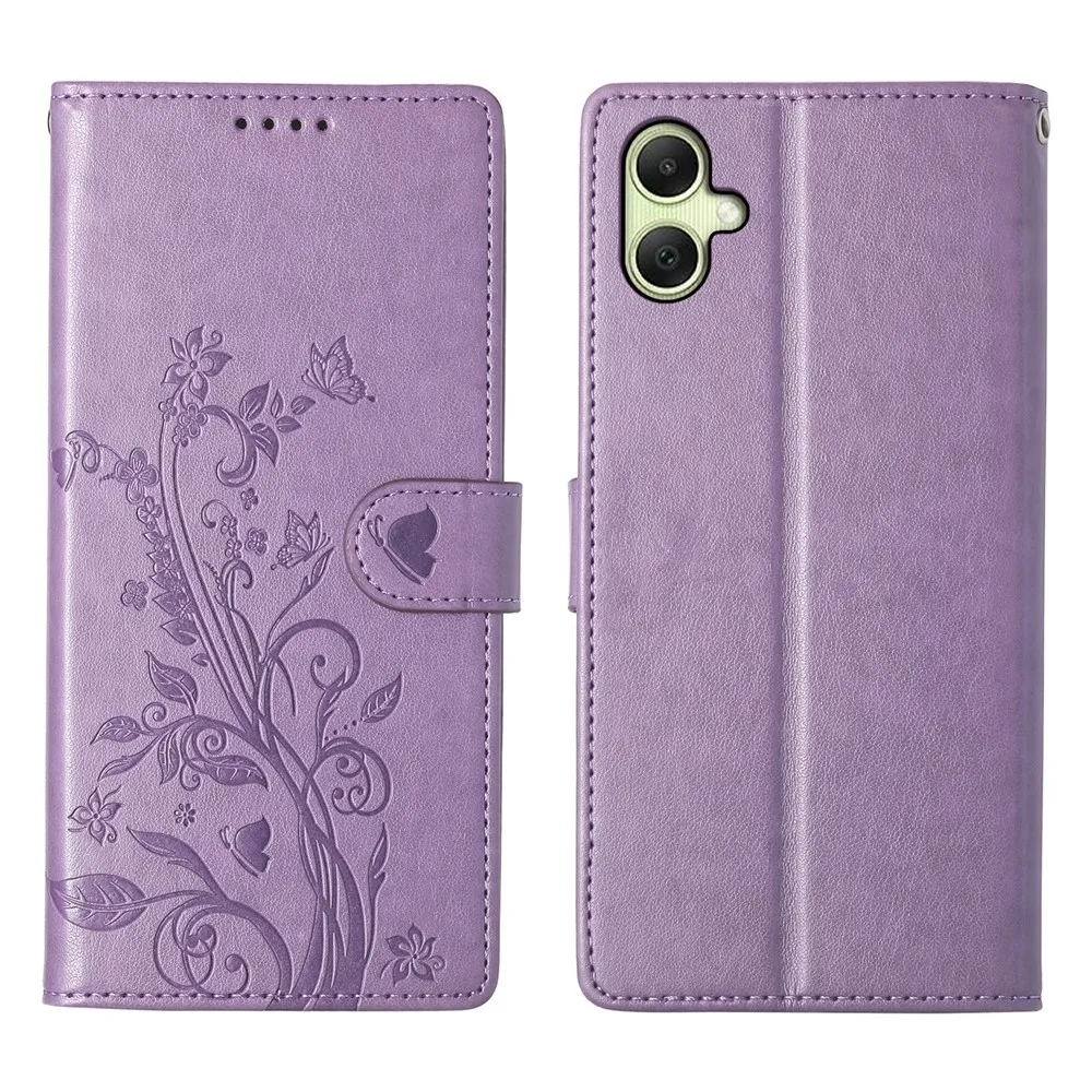 Fialové peňaženkové puzdro Flowery na mobil Samsung Galaxy A07 4G