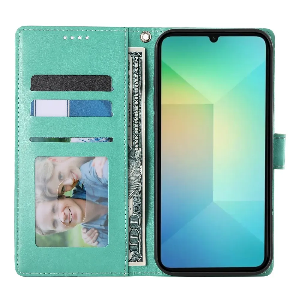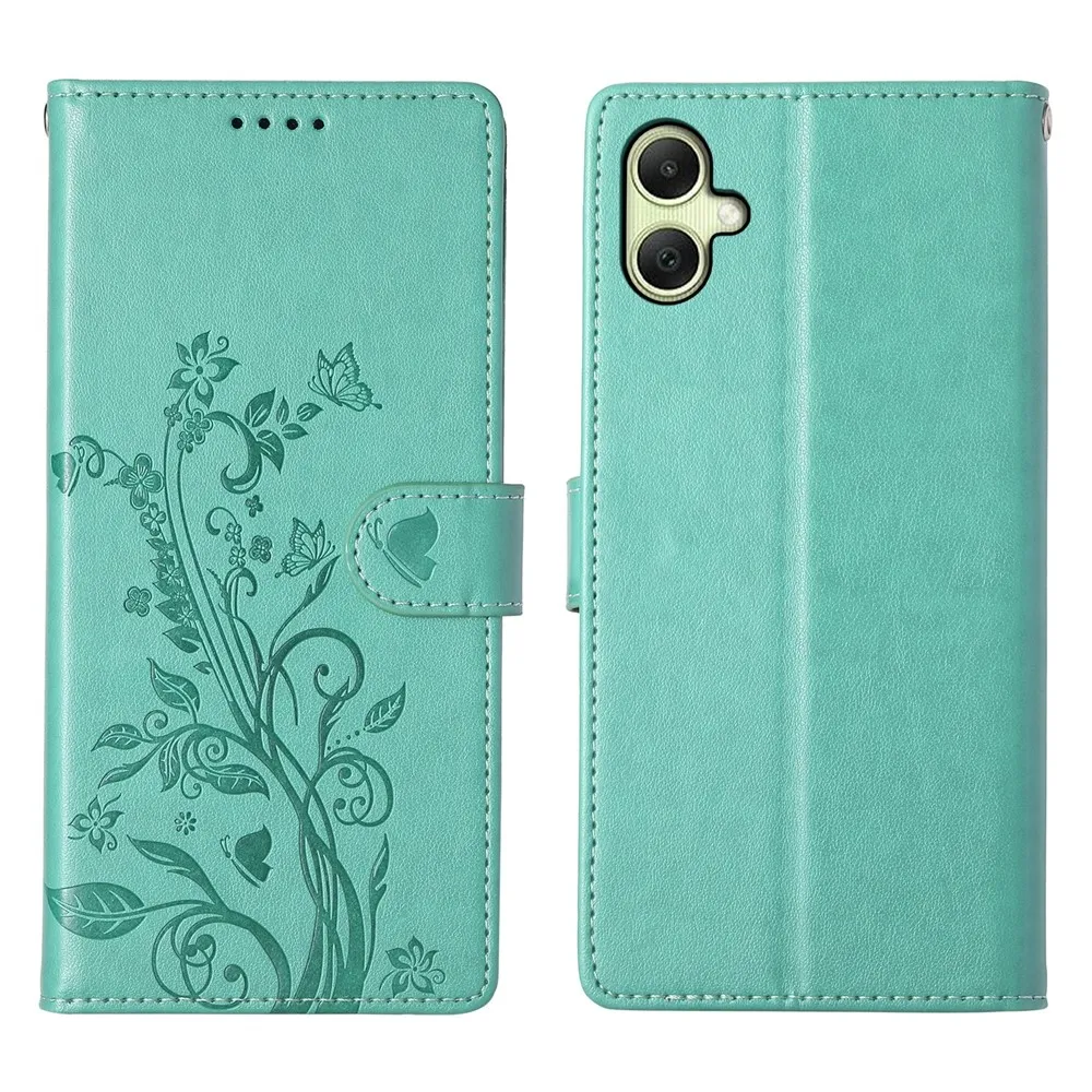 Modrozelené peňaženkové puzdro Flowery na mobil Samsung Galaxy A07 4G