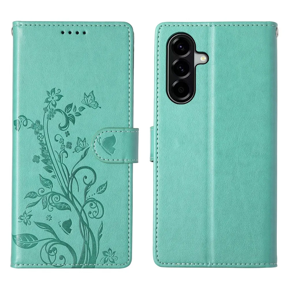 Modrozelené peňaženkové puzdro Flowery na mobil Samsung Galaxy A37 5G
