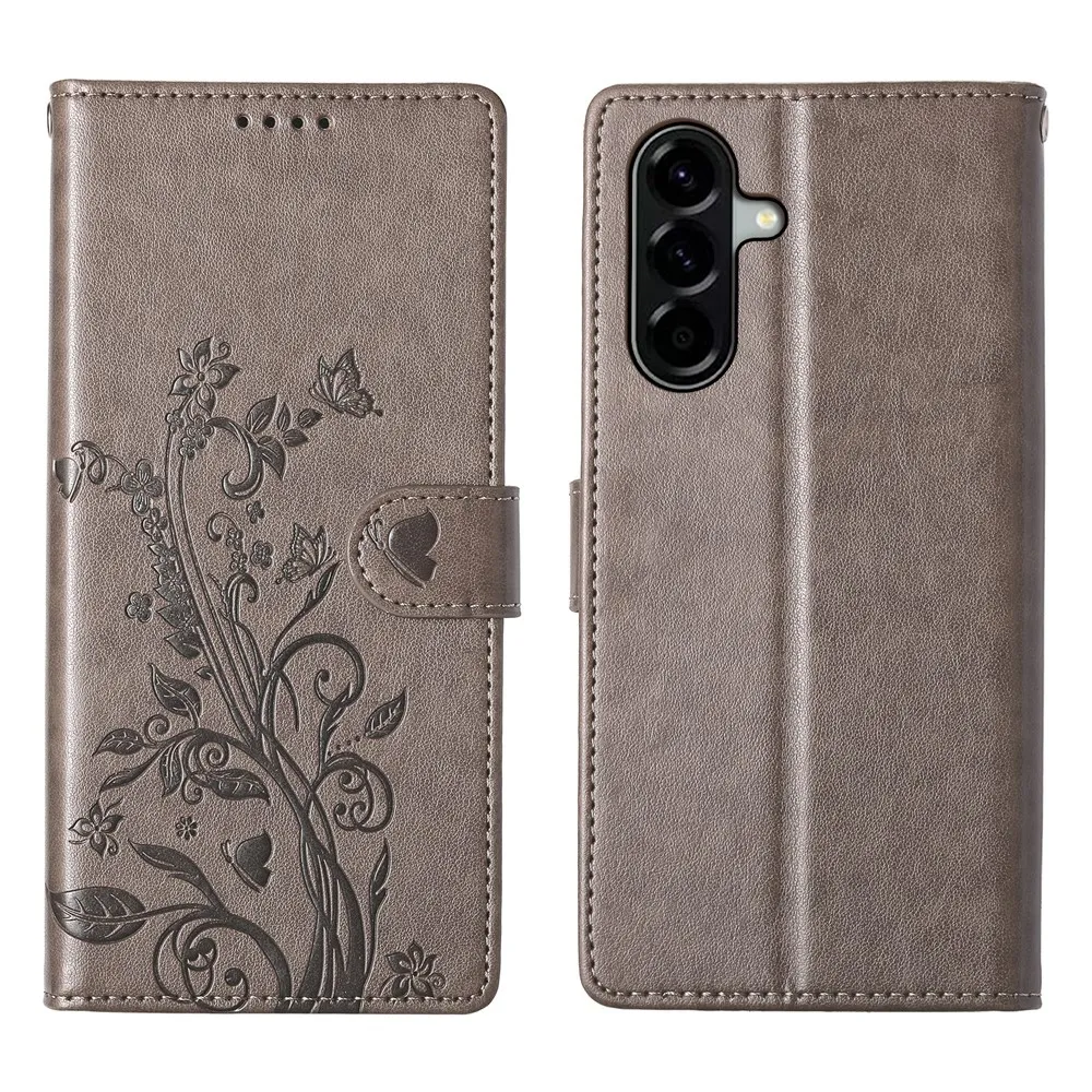 Šedé peňaženkové puzdro Flowery na mobil Samsung Galaxy A37 5G