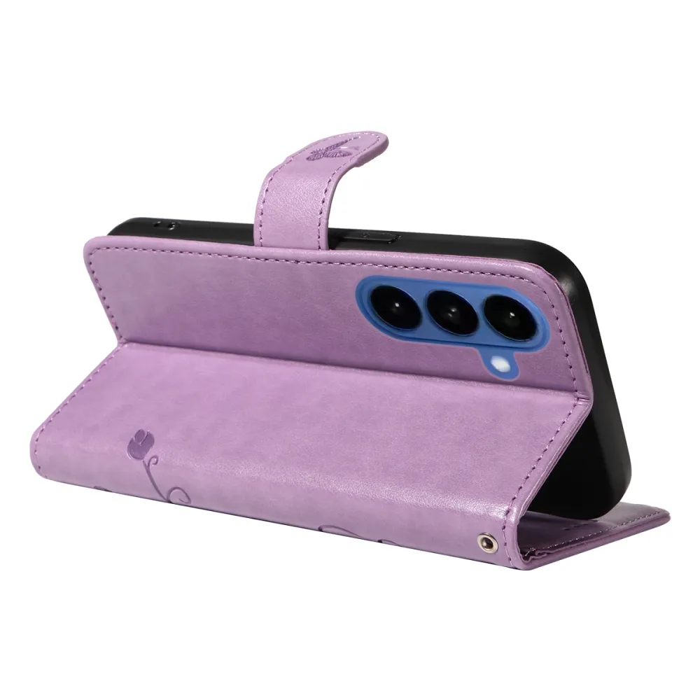 Flowery knižkové púzdro na Samsung Galaxy S26/S26 Pro - fialové