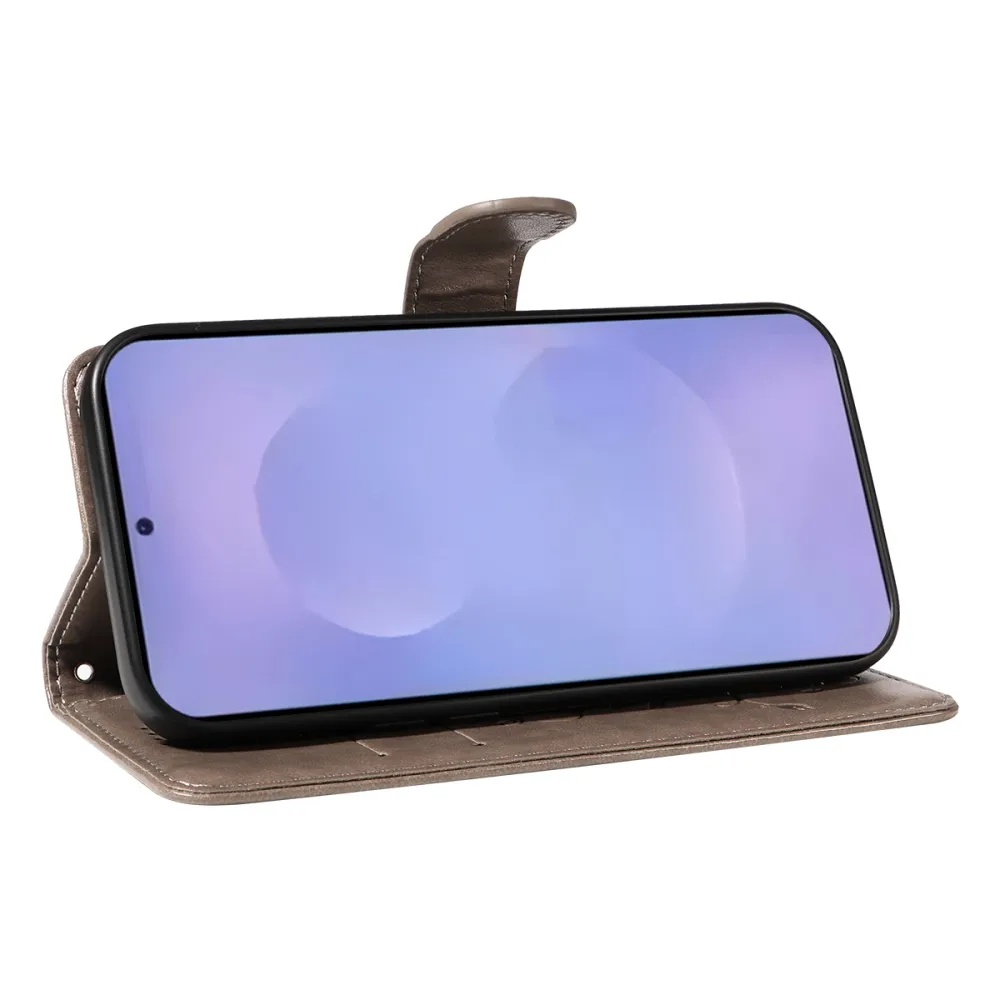 Šedé peňaženkové puzdro Flowery na mobil Samsung Galaxy S26/S26 Pro