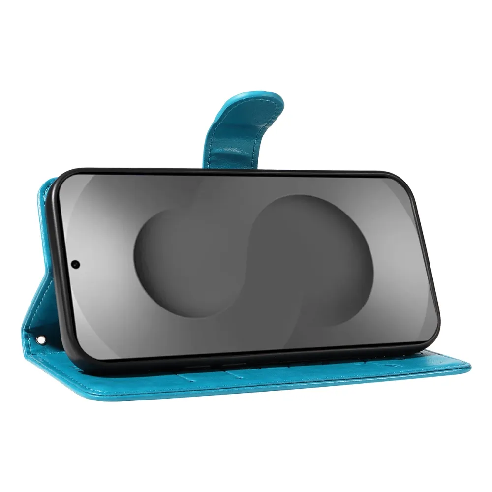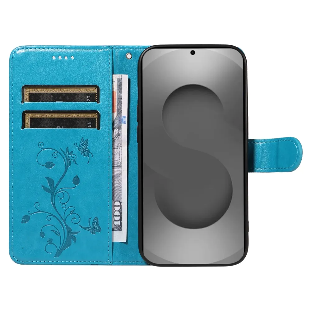 Modré peňaženkové puzdro Flowery na mobil Samsung Galaxy S26 Ultra