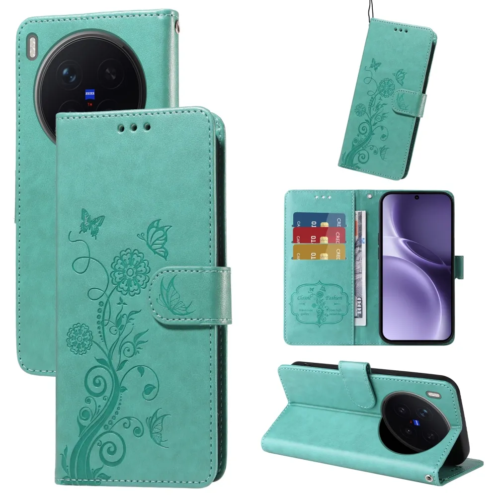 Modrozelené peňaženkové puzdro Flowery na mobil Vivo X300 Pro 5G