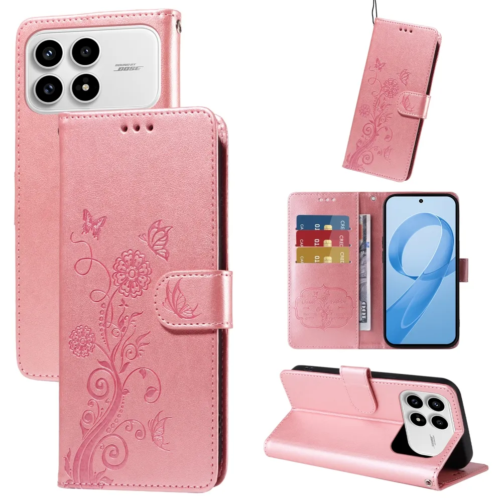 Ružové peňaženkové puzdro Flowery na mobil Xiaomi Poco F8 Pro 5G