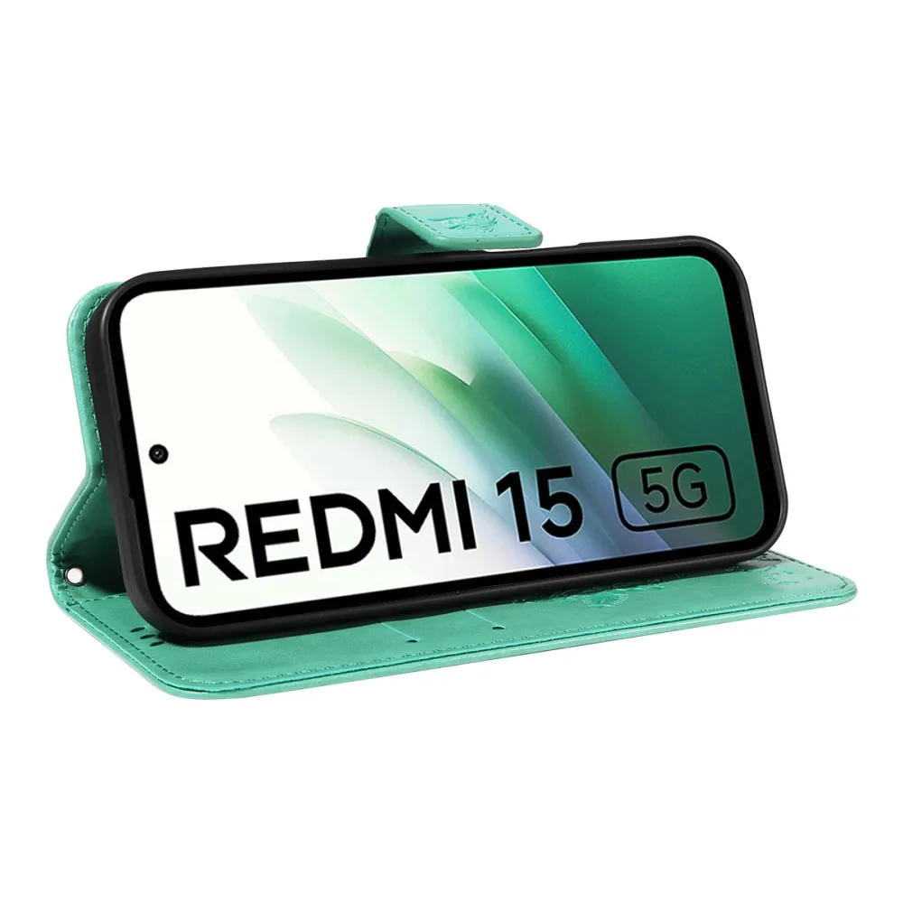 Flowery knižkové puzdro na Xiaomi Redmi 15 4G (171mm) - modrozelené