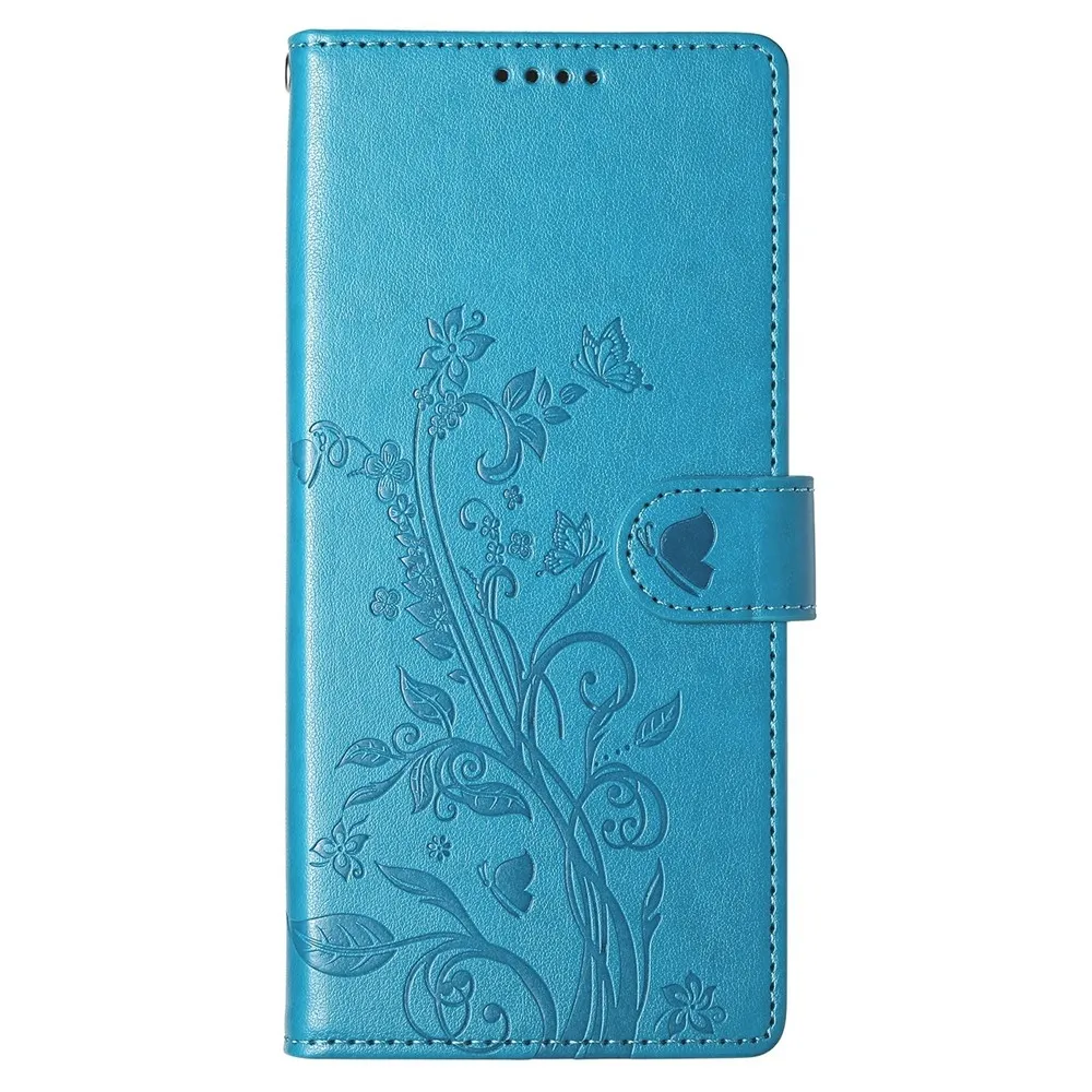 Modré peňaženkové puzdro Flowery na mobil Xiaomi Redmi 15 5G (169mm)