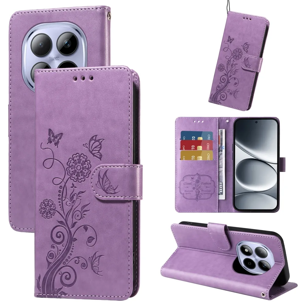 Flowery knižkové puzdro na Xiaomi Redmi Note 15 Pro 4G - fialové