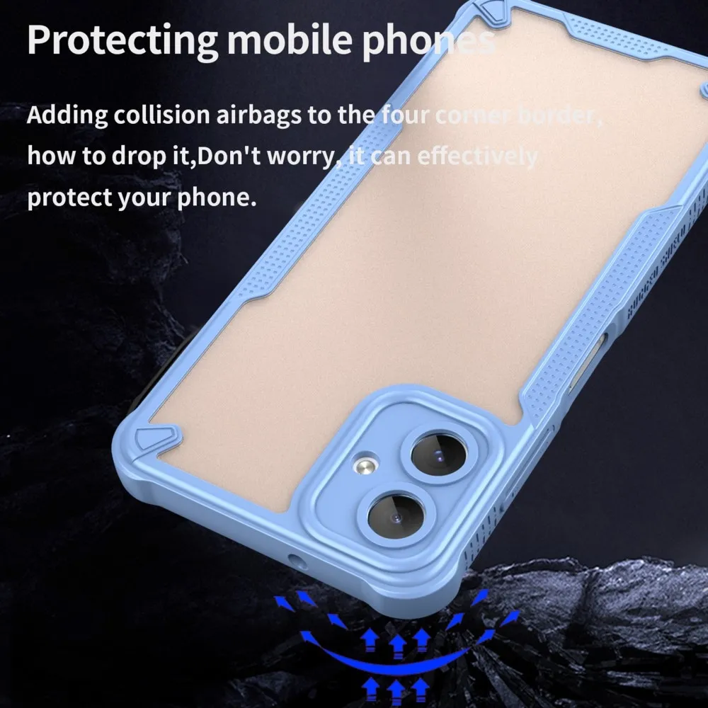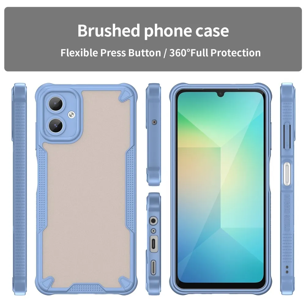 ✅【Odolná a ľahká konštrukcia】 Frosted odolný obal v modrej farbe na mobil Samsung Galaxy A06 4G je vyrobený z pevného PC + mäkkého TPU, puzdro je odolné a ľahké a ponúka robustnú ochranu bez toho, aby vášmu telefónu pridávalo objem ✅【Gélový okraj】 TPU pevný mäkký okraj so stereo tlačidlami, pohodlné uchopenie, poskytuje bezpečné uchopenie a znižuje riziko náhodných pádov ✅【Vystužené rohy】 Konštrukcia štvorrohového airbagu poskytuje zvýšenú ochranu a zlepšuje odolnosť vášho zariadenia proti nárazom a pádu ✅【Ochrana fotoaparátu a obrazovky】 1 mm zvýšený okraj okolo fotoaparátu a obrazovky poskytuje maximálnu ochranu proti poškriabaniu a pádom ✅【Štýlový a praktický dizajn】 Polopriehľadný matný povrch nielen vylepšuje estetiku vášho telefónu, ale tiež odoláva odtlačkom prstov a šmuhám, takže váš telefón vyzerá elegantne. ✅【Presné výrezy pre ľahký prístup】 Vďaka presným výrezom umožňuje puzdro ľahký prístup ku všetkým tlačidlám, portom a fotoaparátom, čo zaisťuje plnú funkčnosť bez nutnosti vyberania puzdra