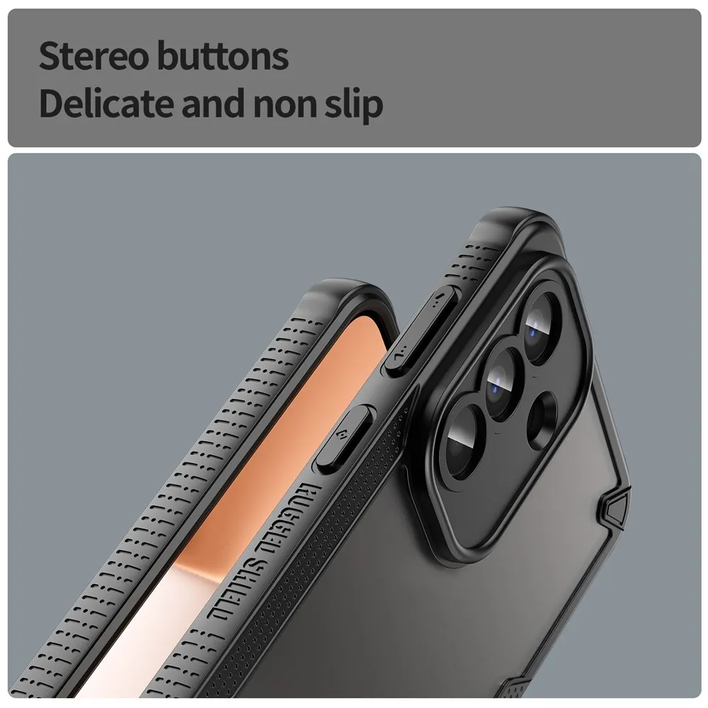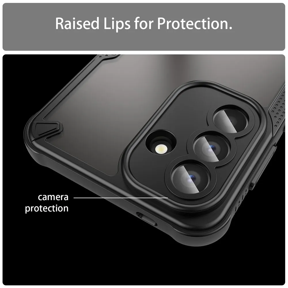✅【Odolná a ľahká konštrukcia】 Frosted odolný obal v čiernej farbe na mobil Samsung Galaxy A57 5G je vyrobený z pevného PC + mäkkého TPU, puzdro je odolné a ľahké a ponúka robustnú ochranu bez toho, aby vášmu telefónu pridávalo objem ✅【Gélový okraj】 TPU pevný mäkký okraj so stereo tlačidlami, pohodlné uchopenie, poskytuje bezpečné uchopenie a znižuje riziko náhodných pádov ✅【Vystužené rohy】 Konštrukcia štvorrohového airbagu poskytuje zvýšenú ochranu a zlepšuje odolnosť vášho zariadenia proti nárazom a pádu ✅【Ochrana fotoaparátu a obrazovky】 1 mm zvýšený okraj okolo fotoaparátu a obrazovky poskytuje maximálnu ochranu proti poškriabaniu a pádom ✅【Štýlový a praktický dizajn】 Polopriehľadný matný povrch nielen vylepšuje estetiku vášho telefónu, ale tiež odoláva odtlačkom prstov a šmuhám, takže váš telefón vyzerá elegantne. ✅【Presné výrezy pre ľahký prístup】 Vďaka presným výrezom umožňuje puzdro ľahký prístup ku všetkým tlačidlám, portom a fotoaparátom, čo zaisťuje plnú funkčnosť bez nutnosti vyberania puzdra
