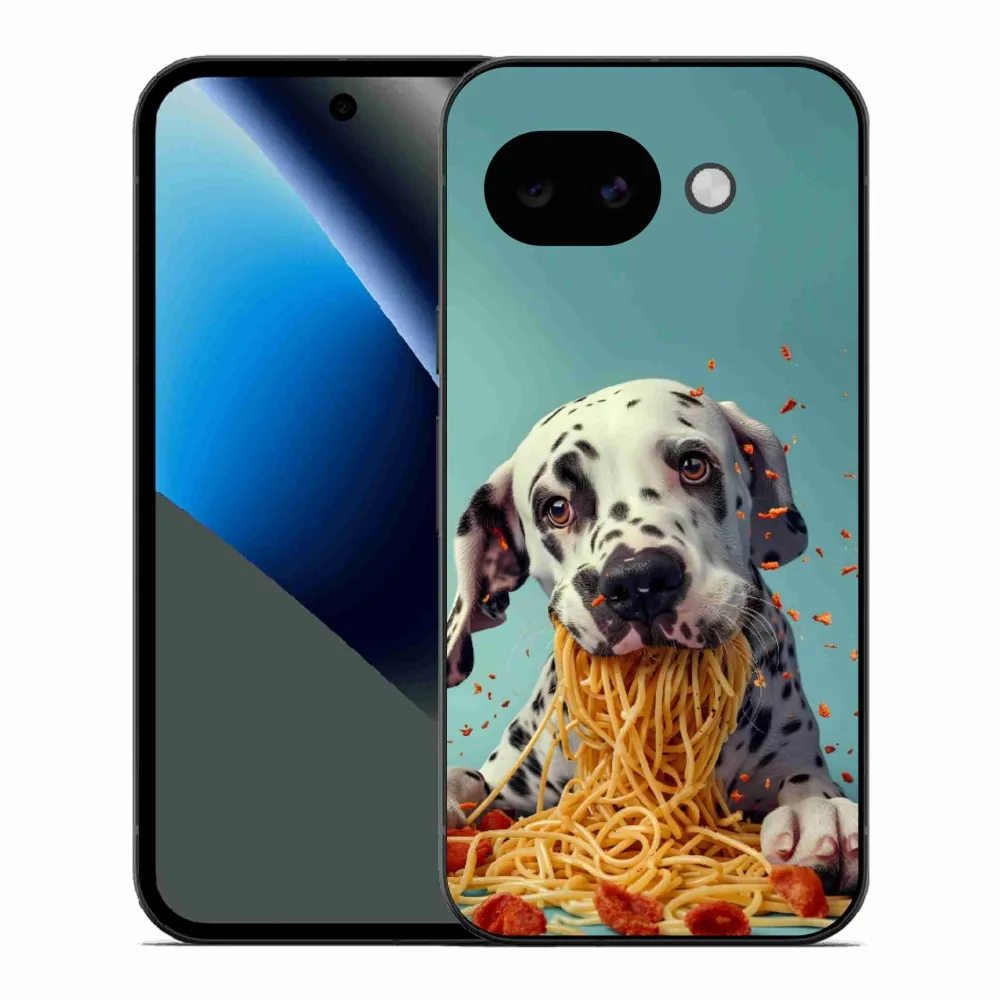 Pružný gélový obal mmCase s obrázkom na Google Pixel 10a - dalmatín a špagety