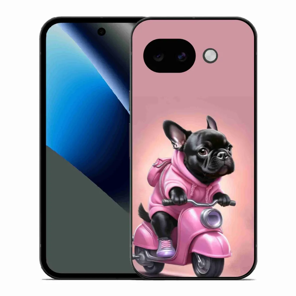 Psie púzdro na Google Pixel 10a - francúzsky buldoček na skútri poskytuje všetky výhody gélových obalov, a to v zaujímavom dizajne.