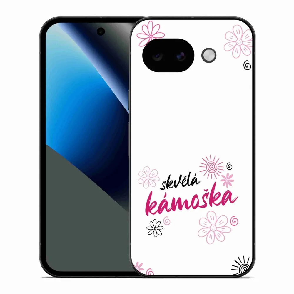 Puzdro, na ktorom je zaujímavý text má názov - skvelá kamoška biele pozadie a je na Google Pixel 10a poskytuje všetky výhody gélových krytov, a to v zaujímavom dizajne.