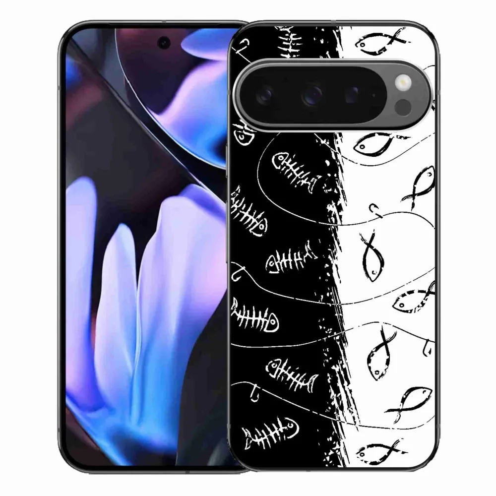 Púzdro pre rybárov na Google Pixel 9 Pro XL - kostry a rybky poskytuje všetky výhody gélových krytov, a to v zaujímavom dizajne.