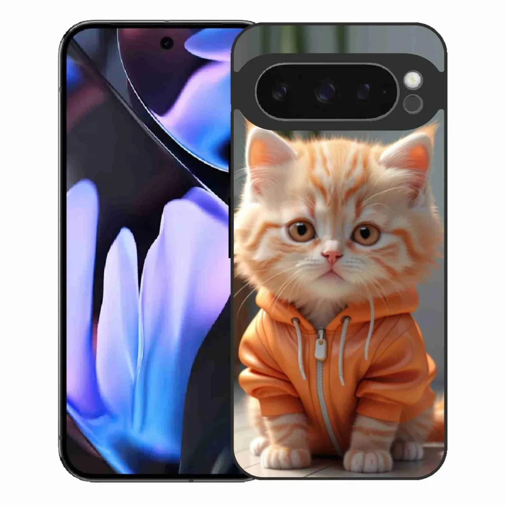 Mačacie púzdro na Google Pixel 9 Pro XL - mačiatko v mikine poskytuje všetky výhody gélových obalov, a to v zaujímavom dizajne.