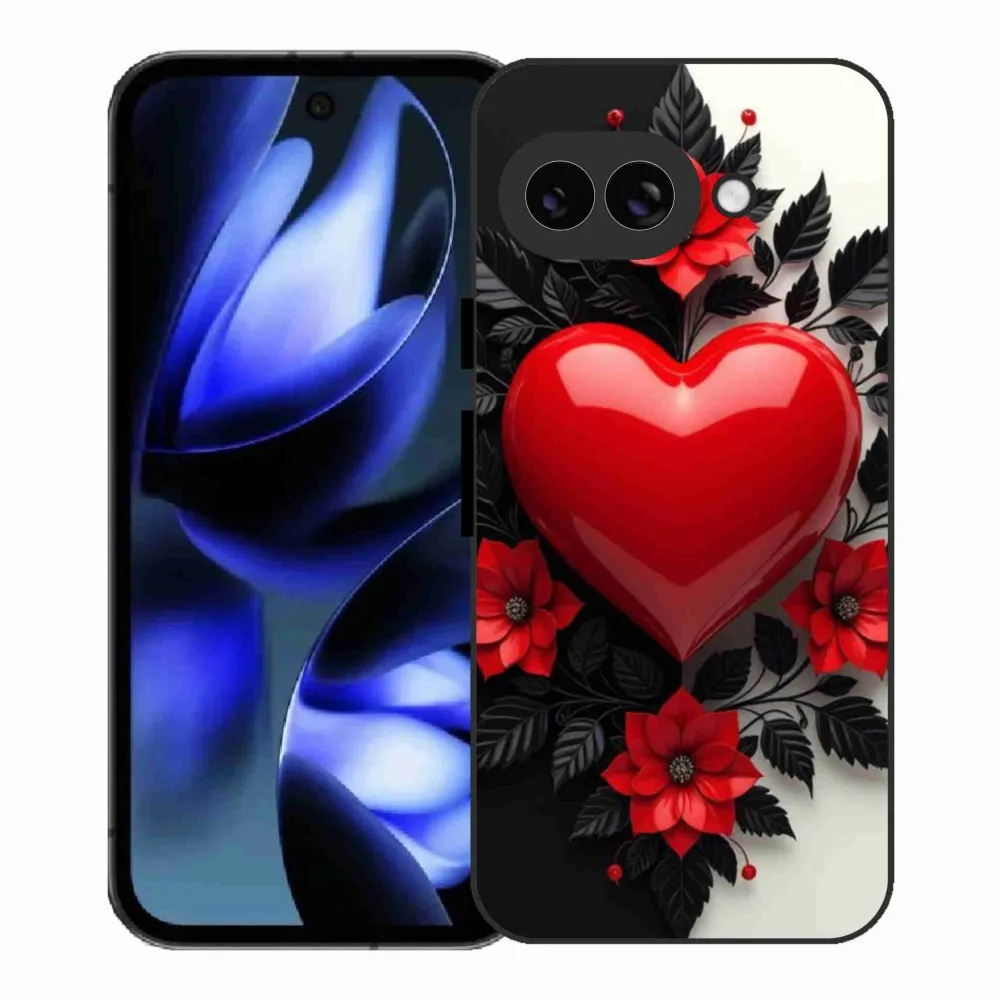 Puzdro na Google Pixel 9a - červené srdce poskytuje všetky výhody gélových obalov, a to v zaujímavom dizajne.