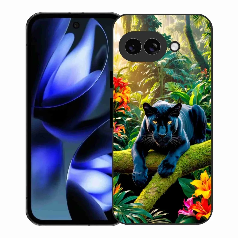 Zvieracie puzdro na Google Pixel 9a - čierny panter v džungli poskytuje všetky výhody gélových obalov, a to v zaujímavom dizajne.