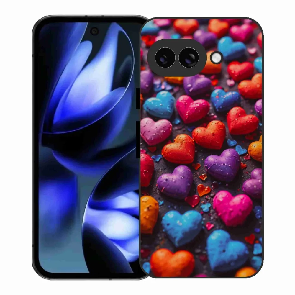 Pružný gélový obal mmCase s obrázkom na Google Pixel 9a - farebné srdcia