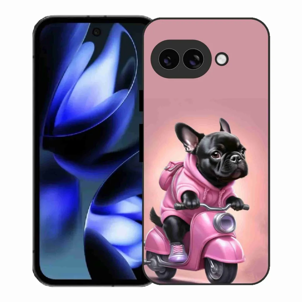 Psie púzdro na Google Pixel 9a - francúzsky buldoček na skútri poskytuje všetky výhody gélových obalov, a to v zaujímavom dizajne.