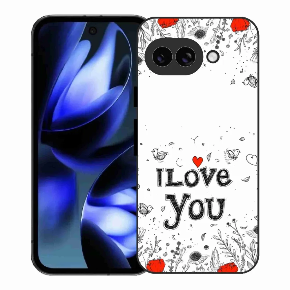 Pružný gélový obal mmCase s obrázkom na Google Pixel 9a - I love you biele pozadie