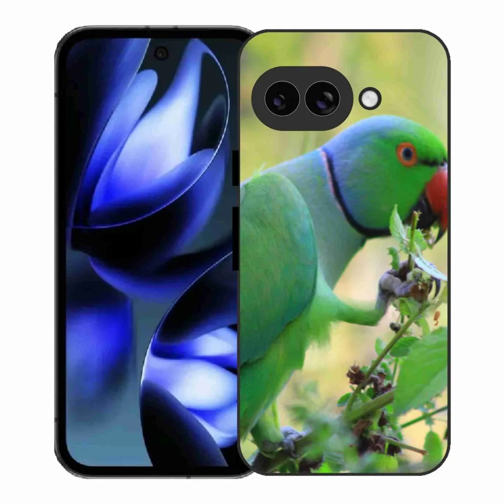 Vtáčie puzdro na Google Pixel 9a - papagáj alexander poskytuje všetky výhody gélových krytov, a to v zaujímavom dizajne.
