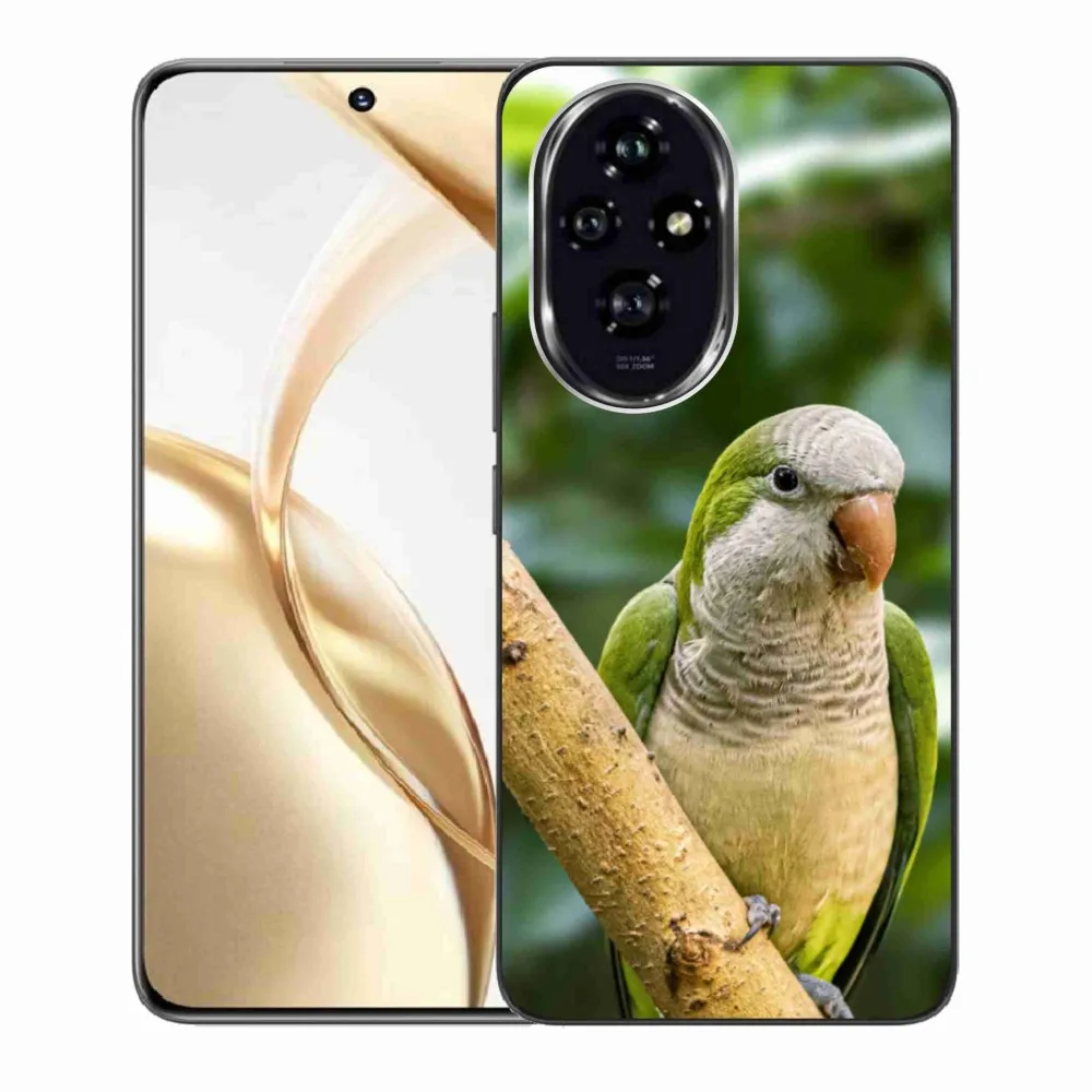 Vtáčie puzdro na Honor 200 5G - papagáj mníšok poskytuje všetky výhody gélových krytov, a to v zaujímavom dizajne.