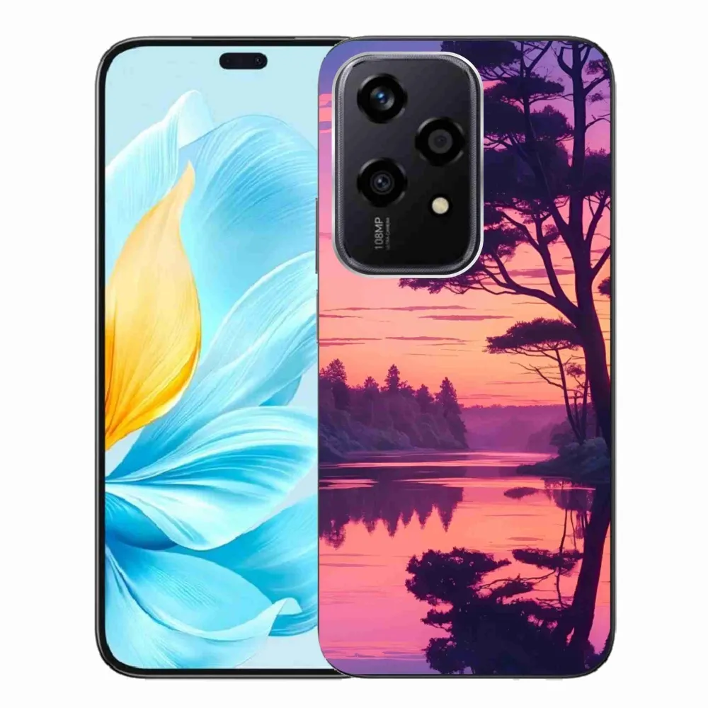 Púzdro na Honor 200 Lite 5G - západ slnka nad jazerom poskytuje všetky výhody gélových obalov, a to v zaujímavom dizajne.