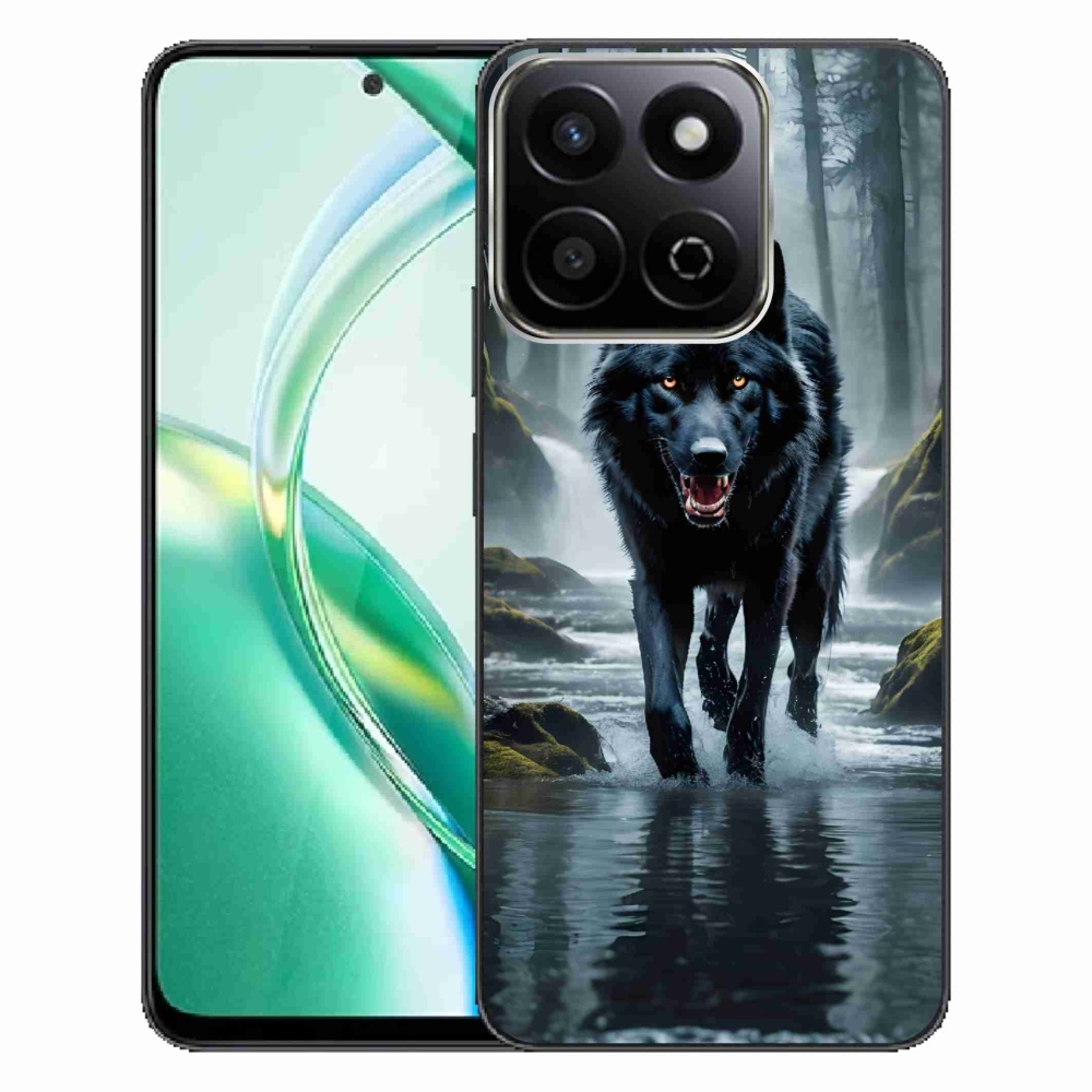 Pružný gélový obal mmCase s obrázkom na Honor 200 Smart 5G - čierny vlk