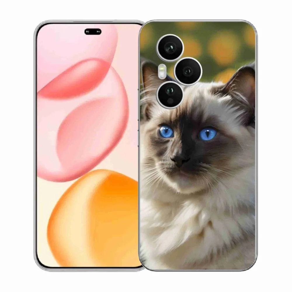Mačacie púzdro na Honor 400 Pro - biely ragdoll poskytuje všetky výhody gélových obalov, a to v zaujímavom dizajne.