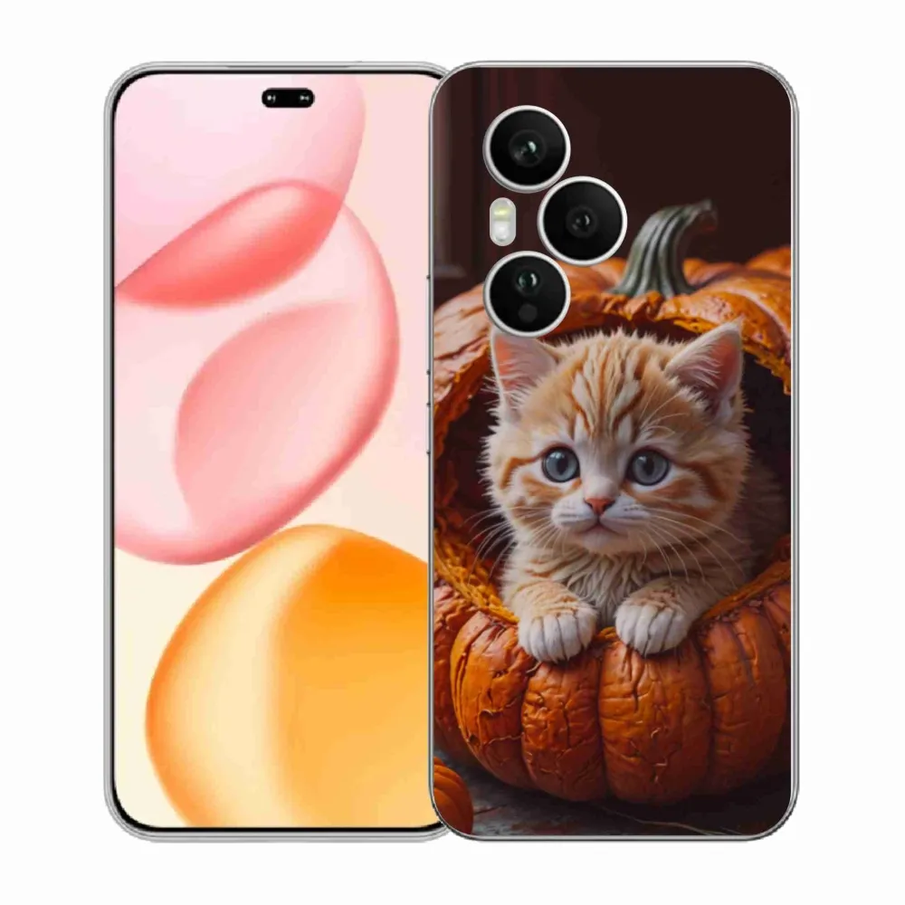 Pružný gélový obal mmCase s obrázkom na Honor 400 Pro - mačiatko a tekvica 2