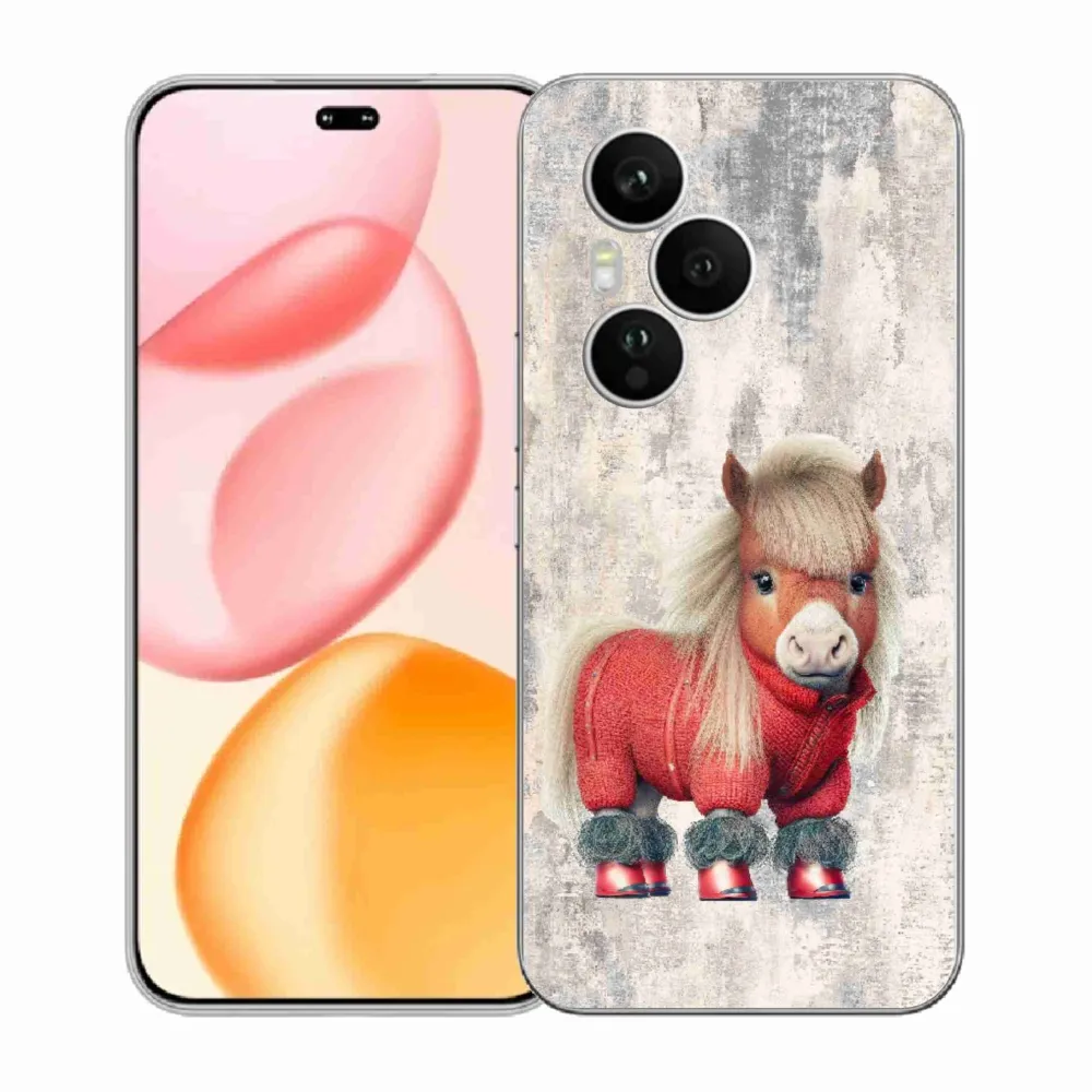 Púzdro s motívom koňa na Honor 400 Pro - poník vo svetri poskytuje všetky výhody gélových krytov, a to v zaujímavom dizajne.