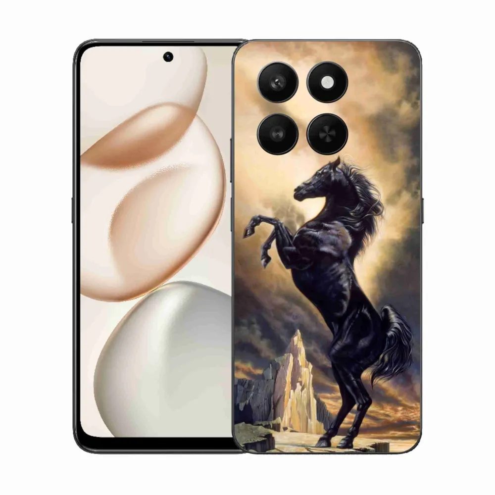 Pružný gélový obal mmCase s obrázkom na Honor 400 Smart 5G/4G/Honor X7d - čierny kreslený kôň