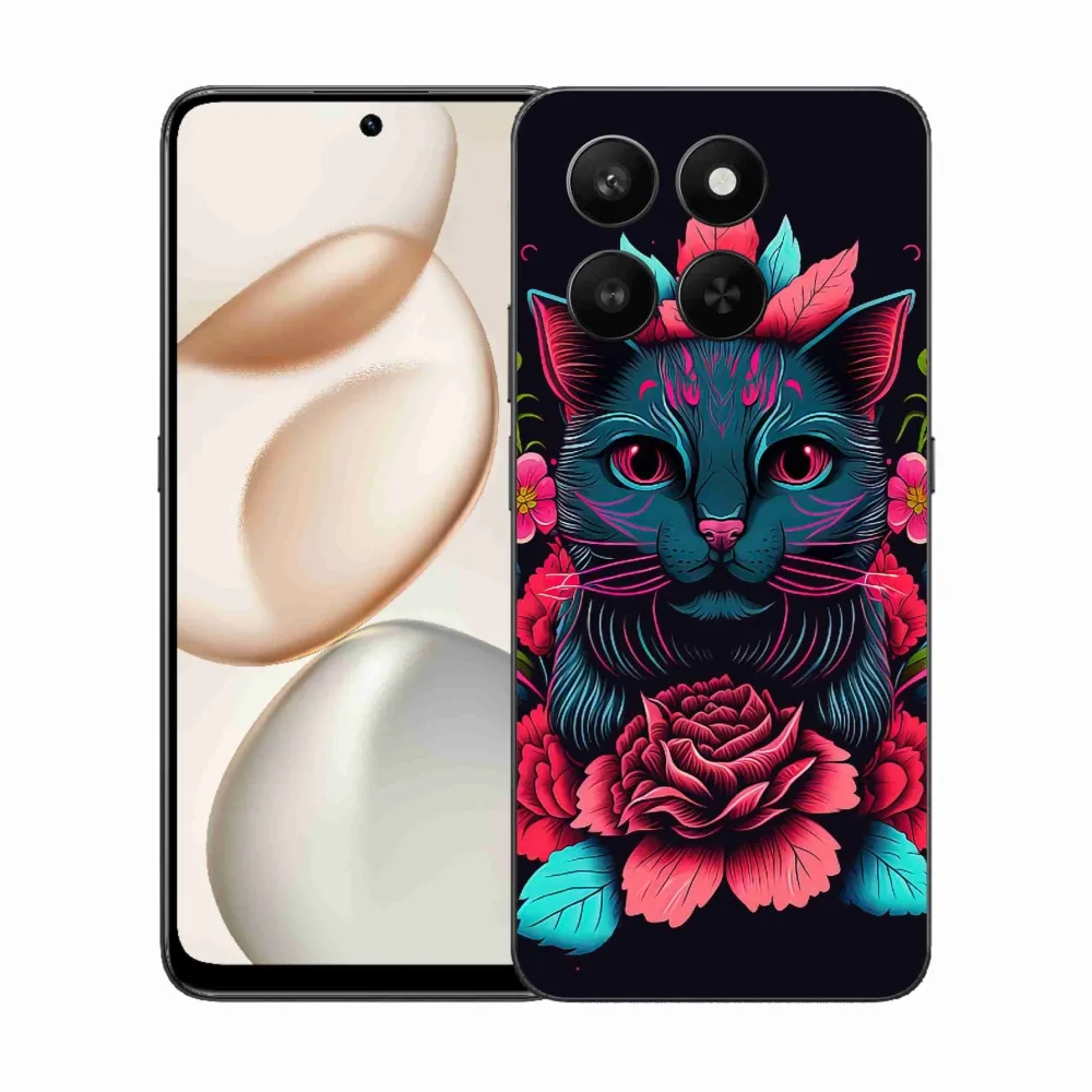 Gélový kryt mmCase na Honor 400 Smart 5G/4G/Honor X7d - kvety a mačka