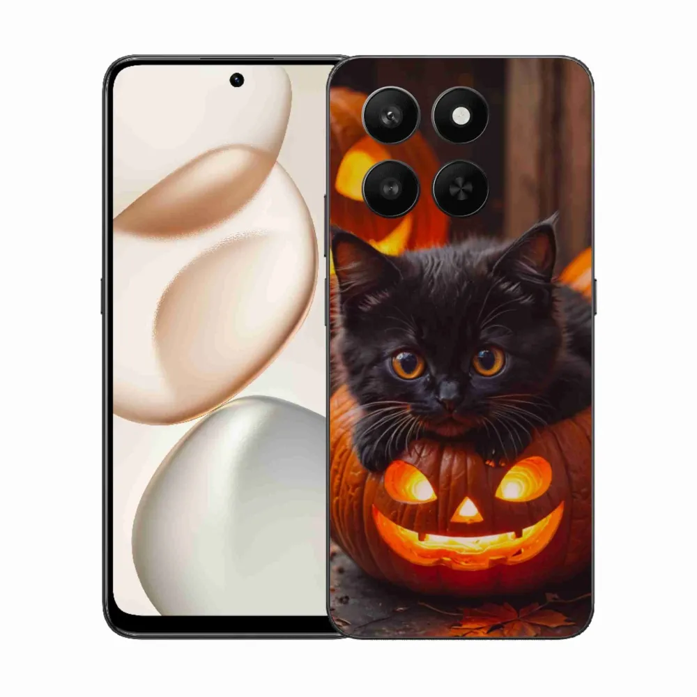 Mačacie púzdro na Honor 400 Smart 5G/4G/Honor X7d - mačiatko a tekvica poskytuje všetky výhody gélových obalov, a to v zaujímavom dizajne.