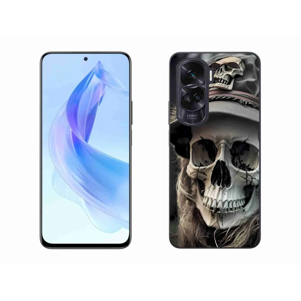 Pružný gélový obal mmCase s obrázkom na Honor 90 Lite - temná lebka