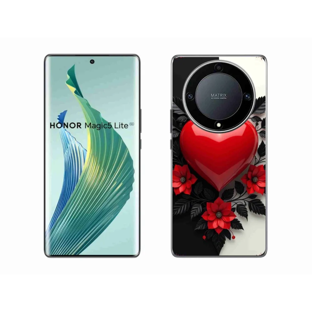 Pružný gélový obal mmCase s obrázkom na Honor Magic 5 Lite 5G - červené srdce