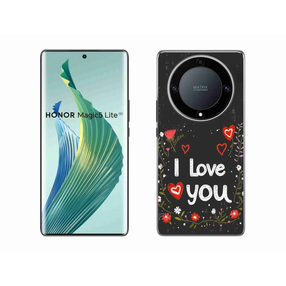 Pružný gélový obal mmCase s obrázkom na Honor Magic 5 Lite 5G - I love you čierne pozadie