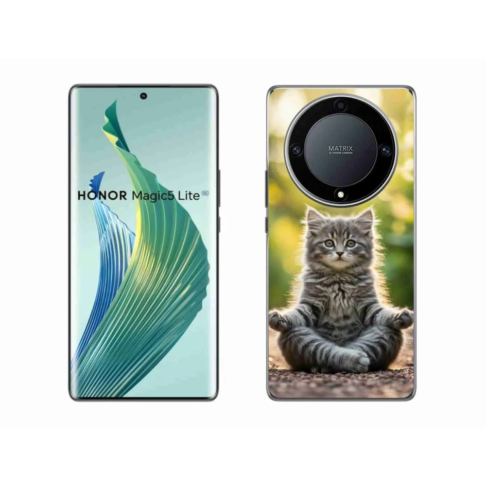Pružný gélový obal mmCase s obrázkom na Honor Magic 5 Lite 5G - meditujúce mačiatko