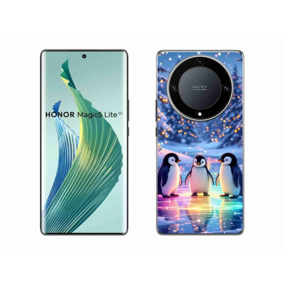 Pružný gélový obal mmCase s obrázkom na Honor Magic 5 Lite 5G - tučniaky