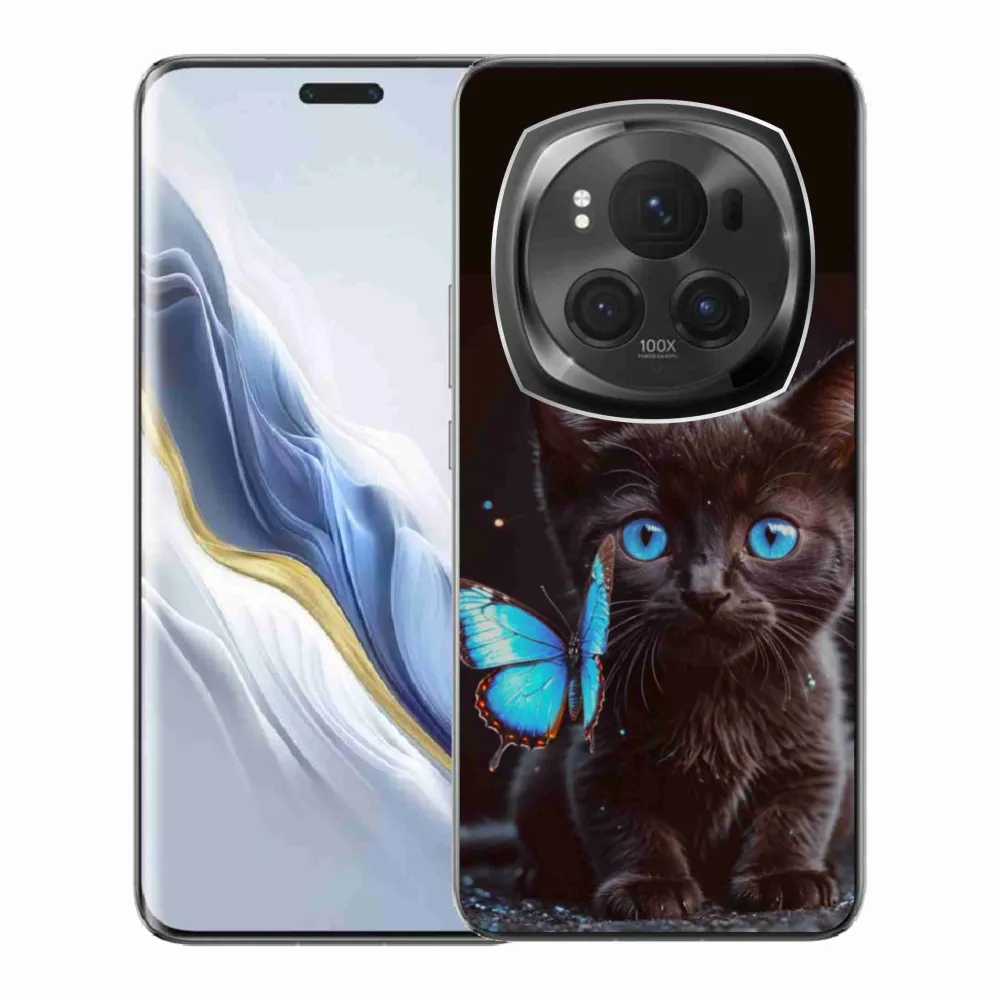 Pružný gélový obal mmCase s obrázkom na Honor Magic 6 Pro 5G - čierne mačiatko 3