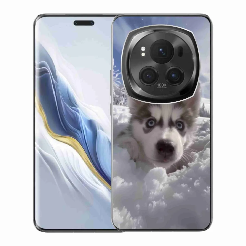 Pružný gélový obal mmCase s obrázkom na Honor Magic 6 Pro 5G - husky v snehu