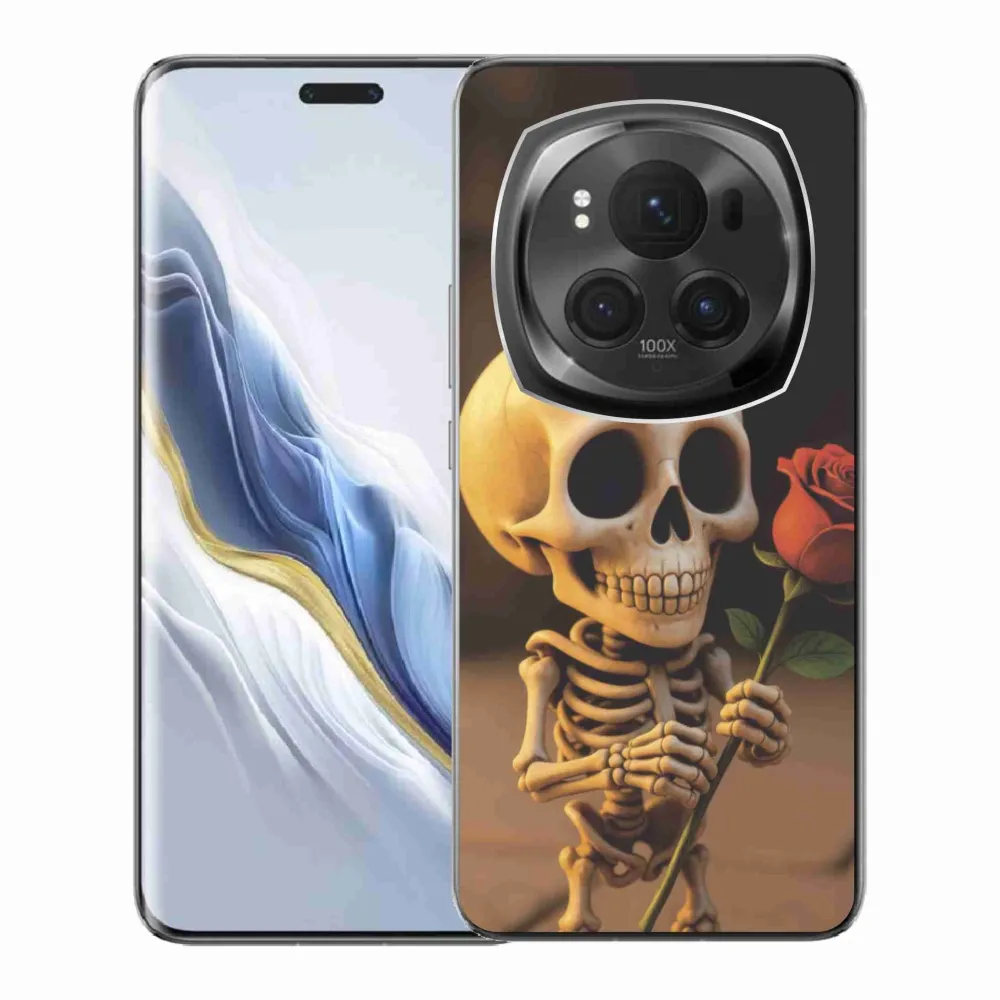 Púzdro na Honor Magic 6 Pro 5G - kostlivec s ružou poskytuje všetky výhody gélových obalov, a to v zaujímavom dizajne.