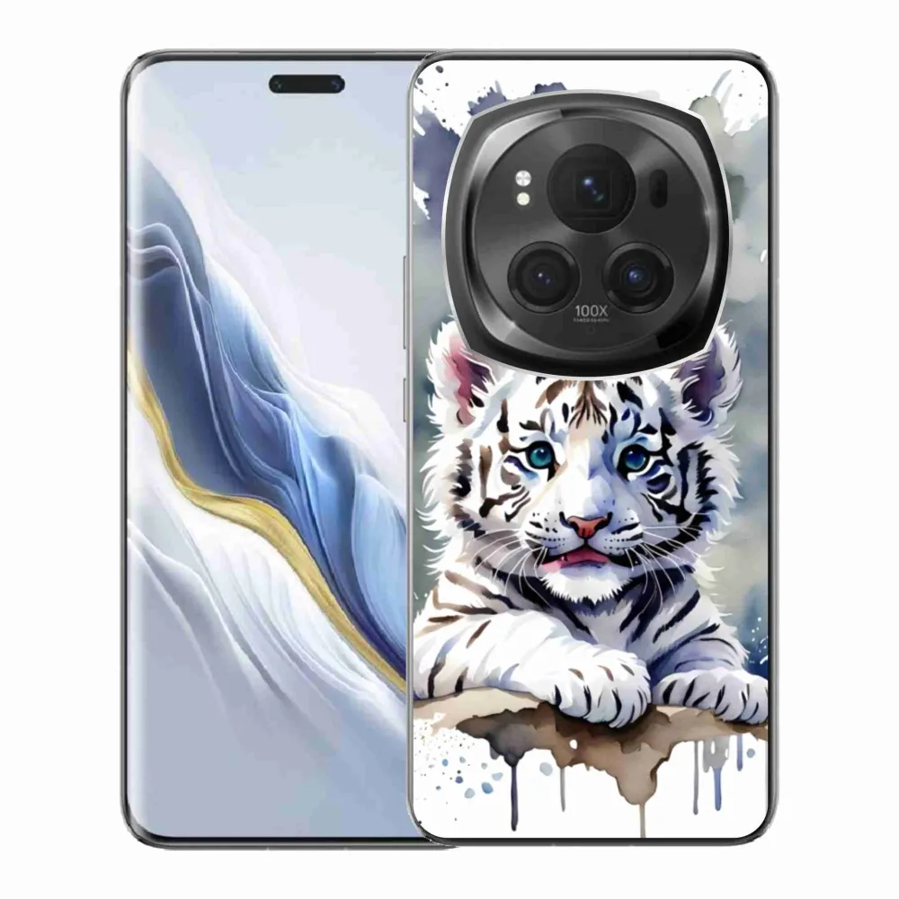 Psie púzdro na Honor Magic 6 Pro 5G - mláďa bieleho tigra poskytuje všetky výhody gélových obalov, a to v zaujímavom dizajne.