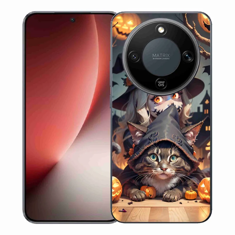Mačacie púzdro na Honor Magic 8 Lite 5G - čarodejnice s mačkou poskytuje všetky výhody gélových krytov, a to v zaujímavom dizajne.