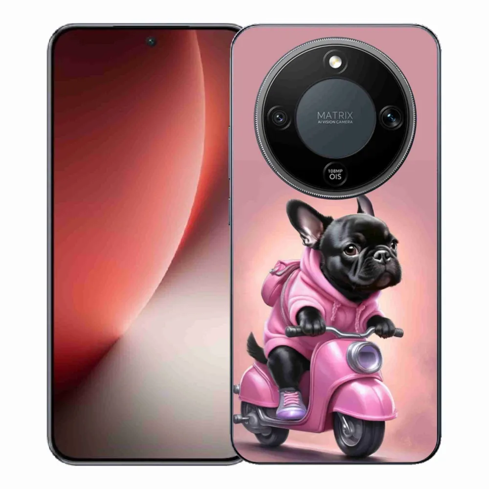 Psie púzdro na Honor Magic 8 Lite 5G - francúzsky buldoček na skútri poskytuje všetky výhody gélových obalov, a to v zaujímavom dizajne.
